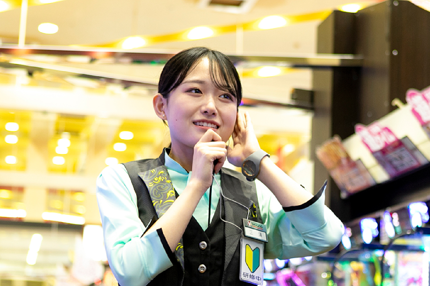 ホール業務を中心に、入れ替え作業やSNSの運営にも携わっています。自分が投稿したSNSを見て来店されたお客様から声をかけてもらえるのはとても嬉しいです。また、“やりたい”と伝えた機械作業にも挑戦させてもらえて、チャレンジできる環境に感謝しています。